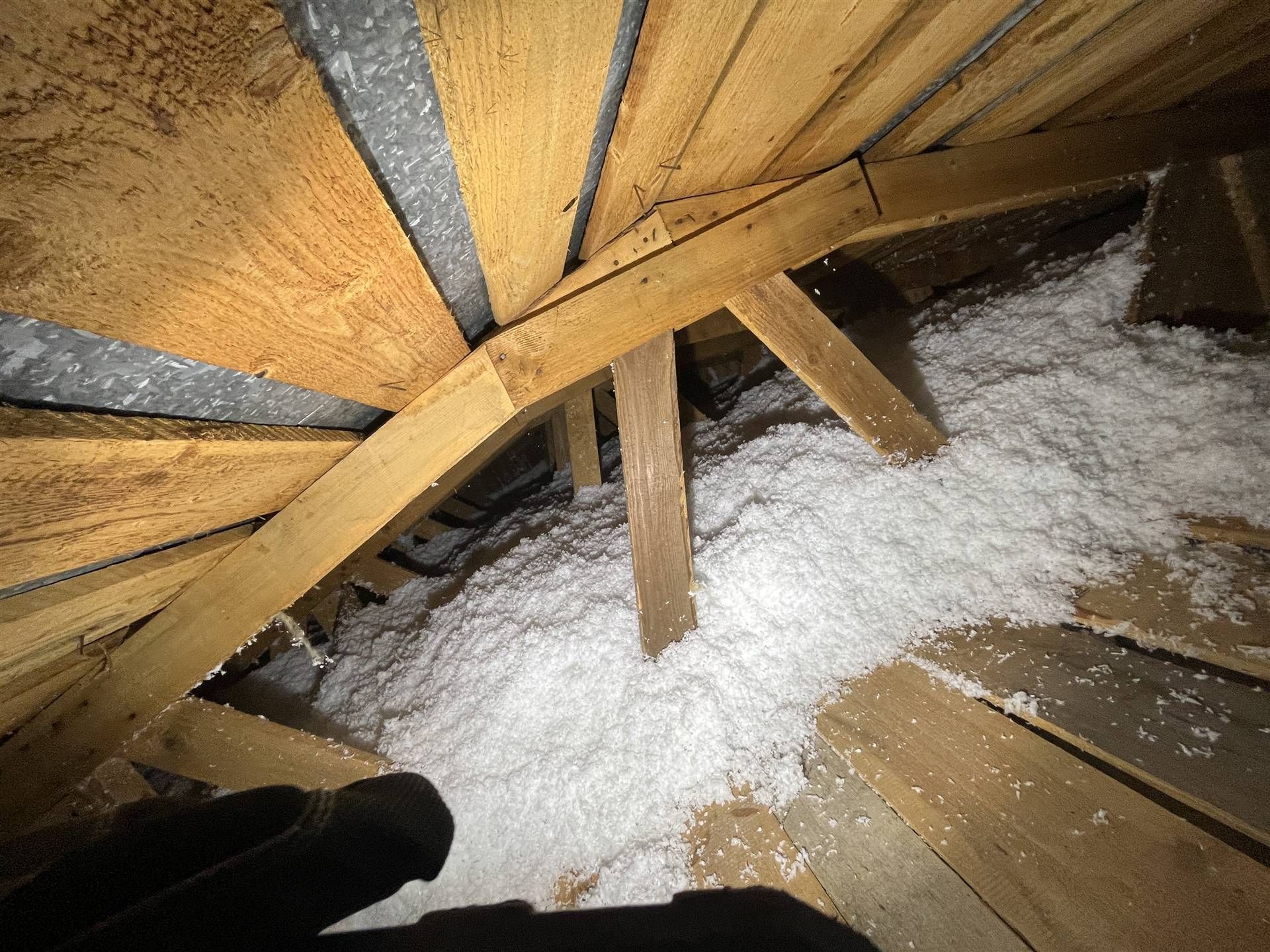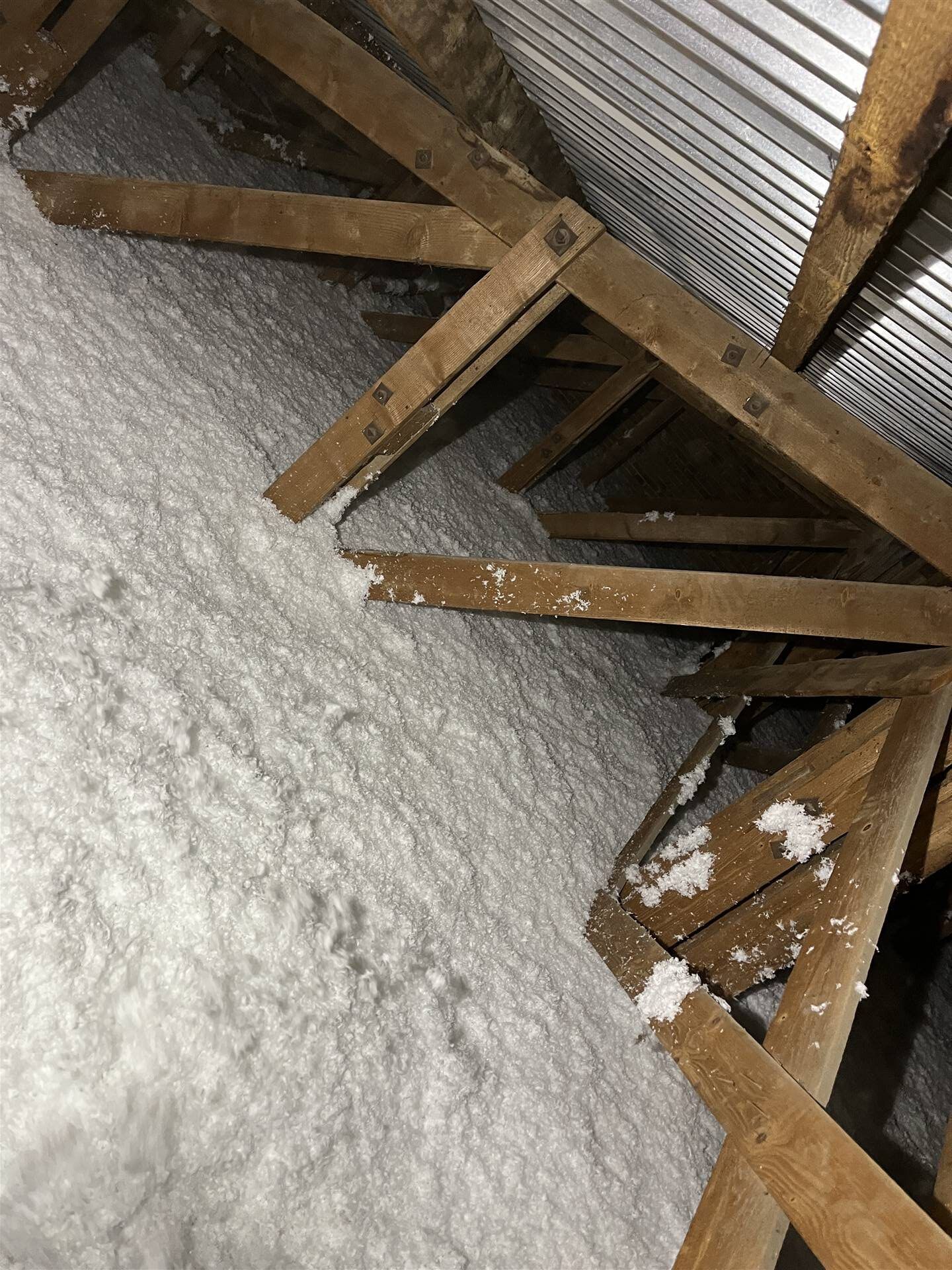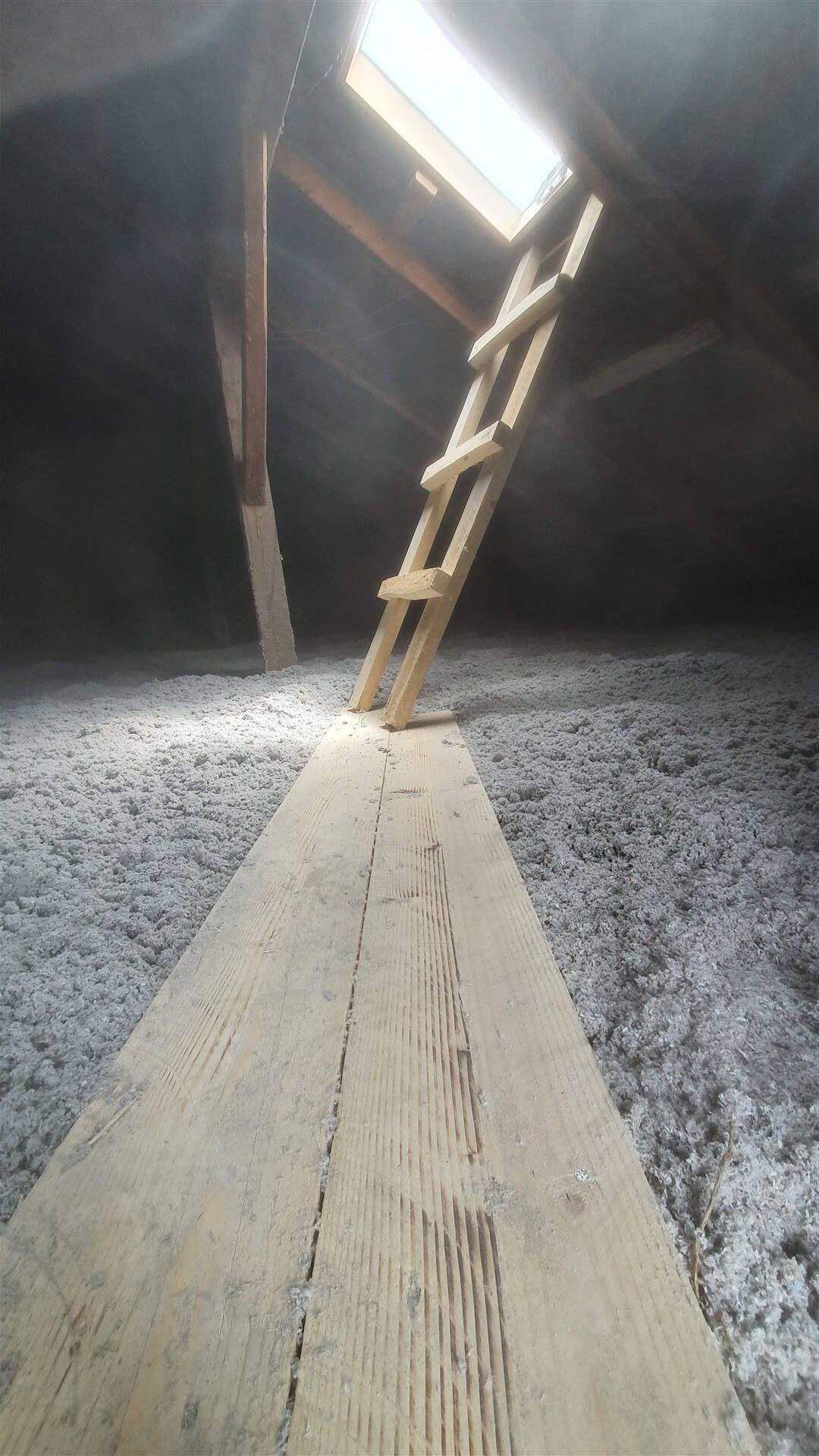 Dosť často by to ani nebolo možné, lebo takéto podhľady majú malú únosnosť „nieje jedno kde stúpite“.  Pri použití fúkanej izolácie je dopravovaný materiál po hadici. Netreba nič vynášať. Výsledná nafúkaná vrstva izolácie dokonale „bezšpárovo“ vyplní zateplovanú plochu. Takto dokážeme eliminovať všetky tepelné mosty.