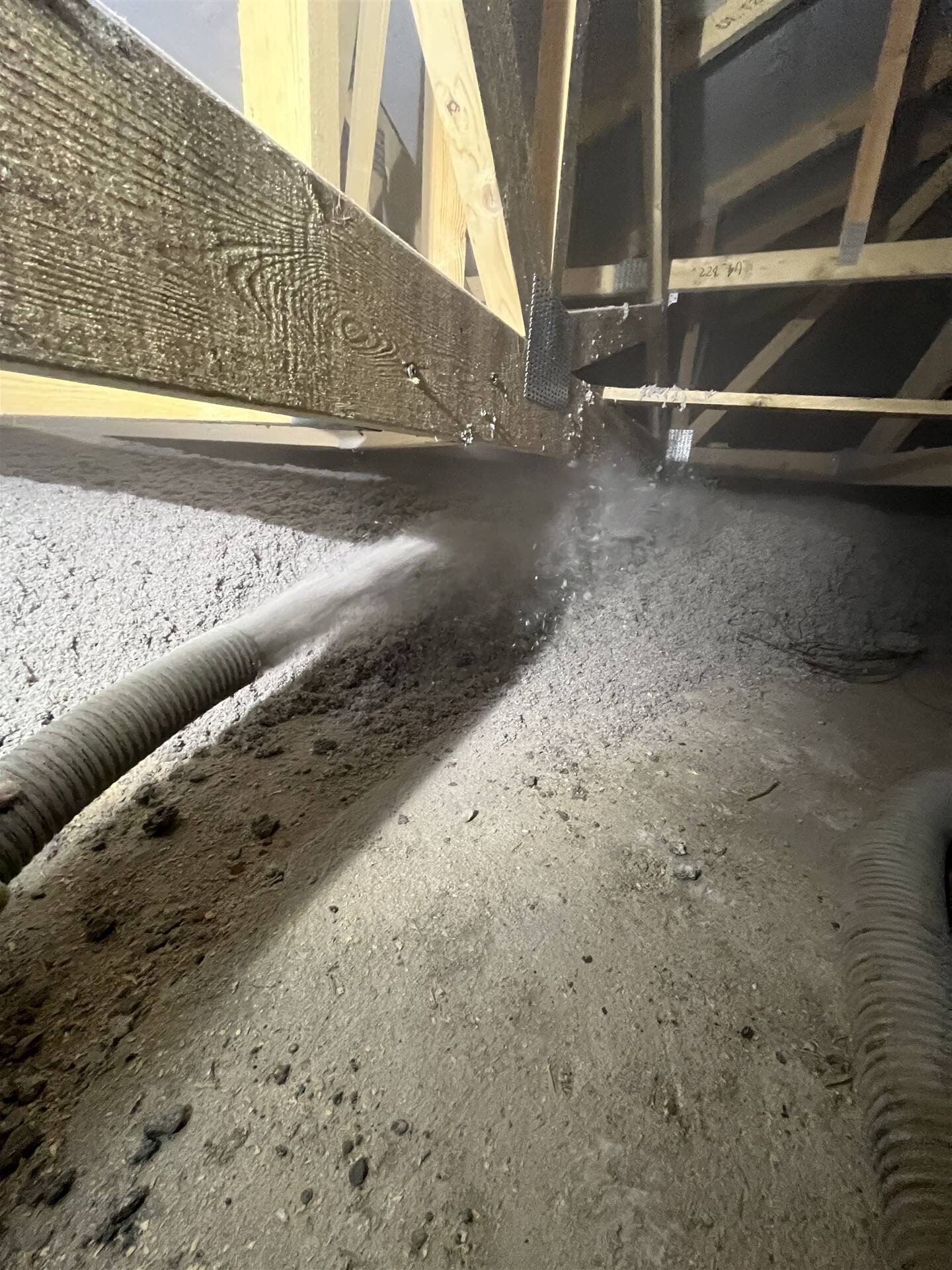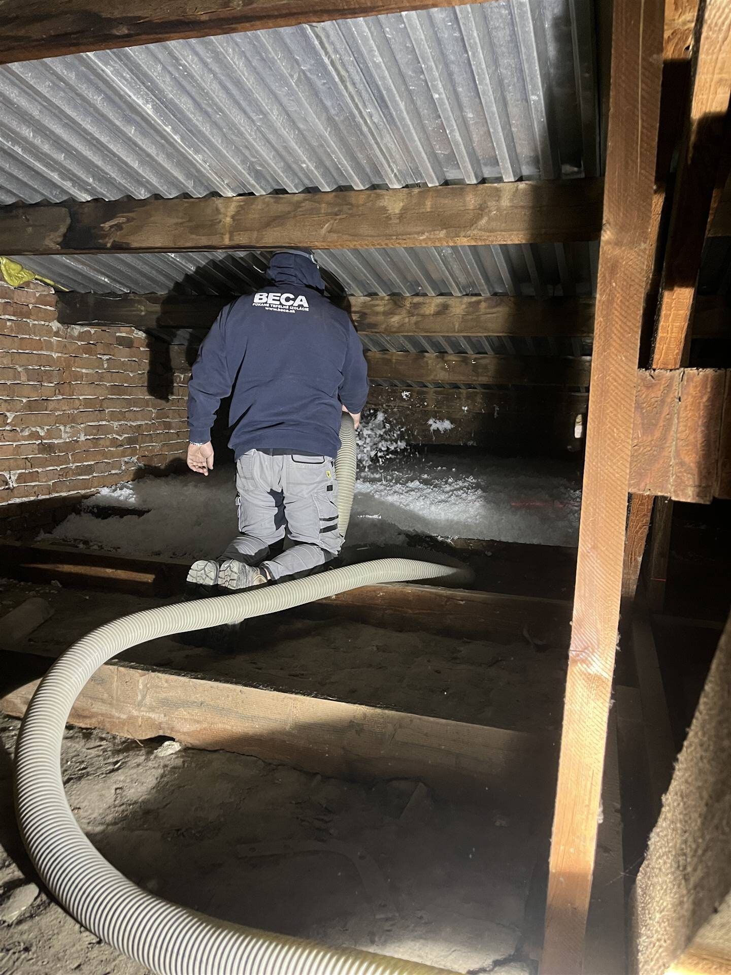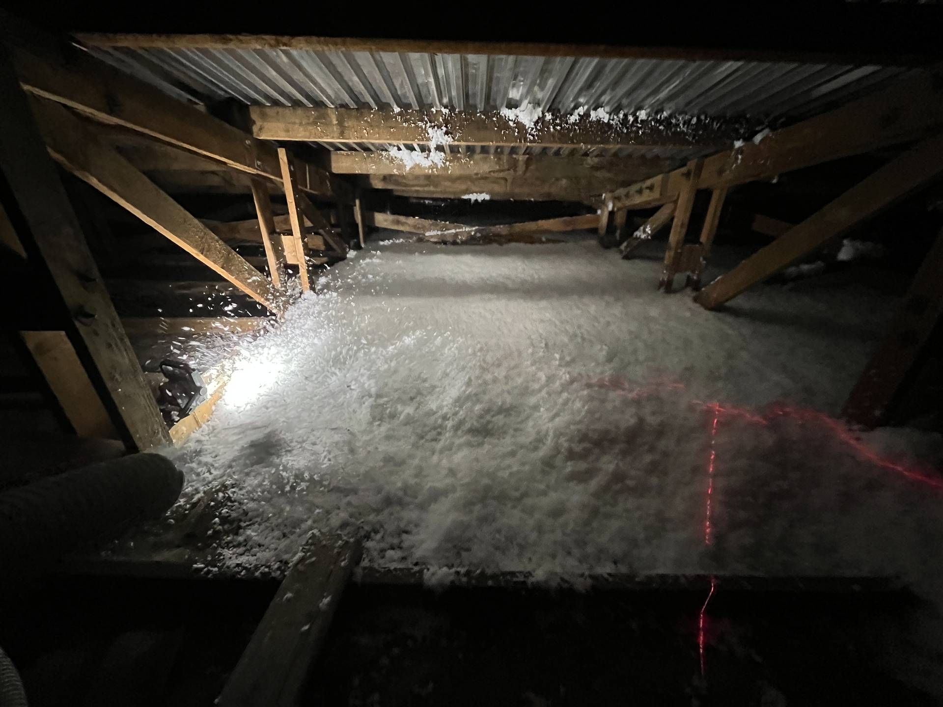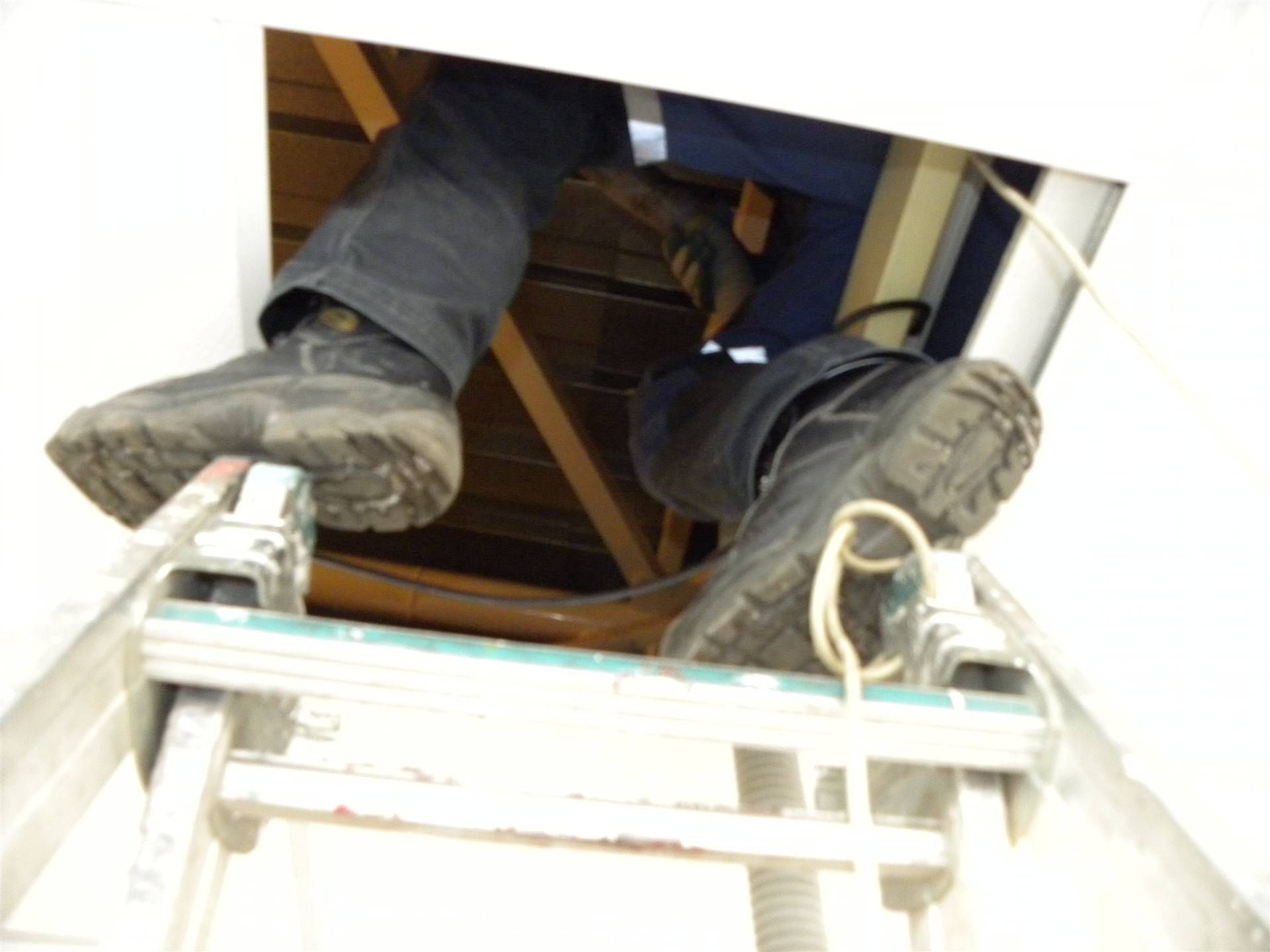 Dosť často by to ani nebolo možné, lebo takéto podhľady majú malú únosnosť „nieje jedno kde stúpite“.  Pri použití fúkanej izolácie je dopravovaný materiál po hadici. Netreba nič vynášať. Výsledná nafúkaná vrstva izolácie dokonale „bezšpárovo“ vyplní zateplovanú plochu. Takto dokážeme eliminovať všetky tepelné mosty.