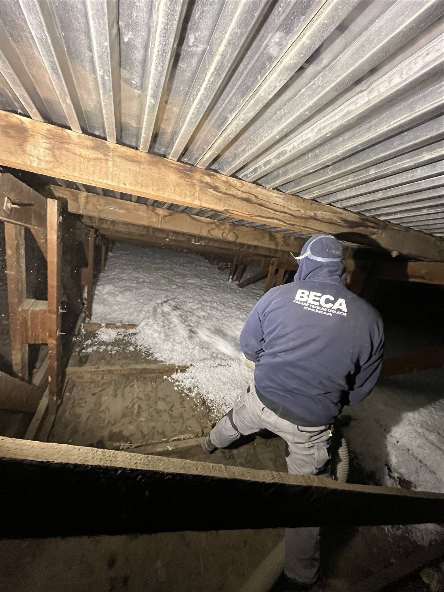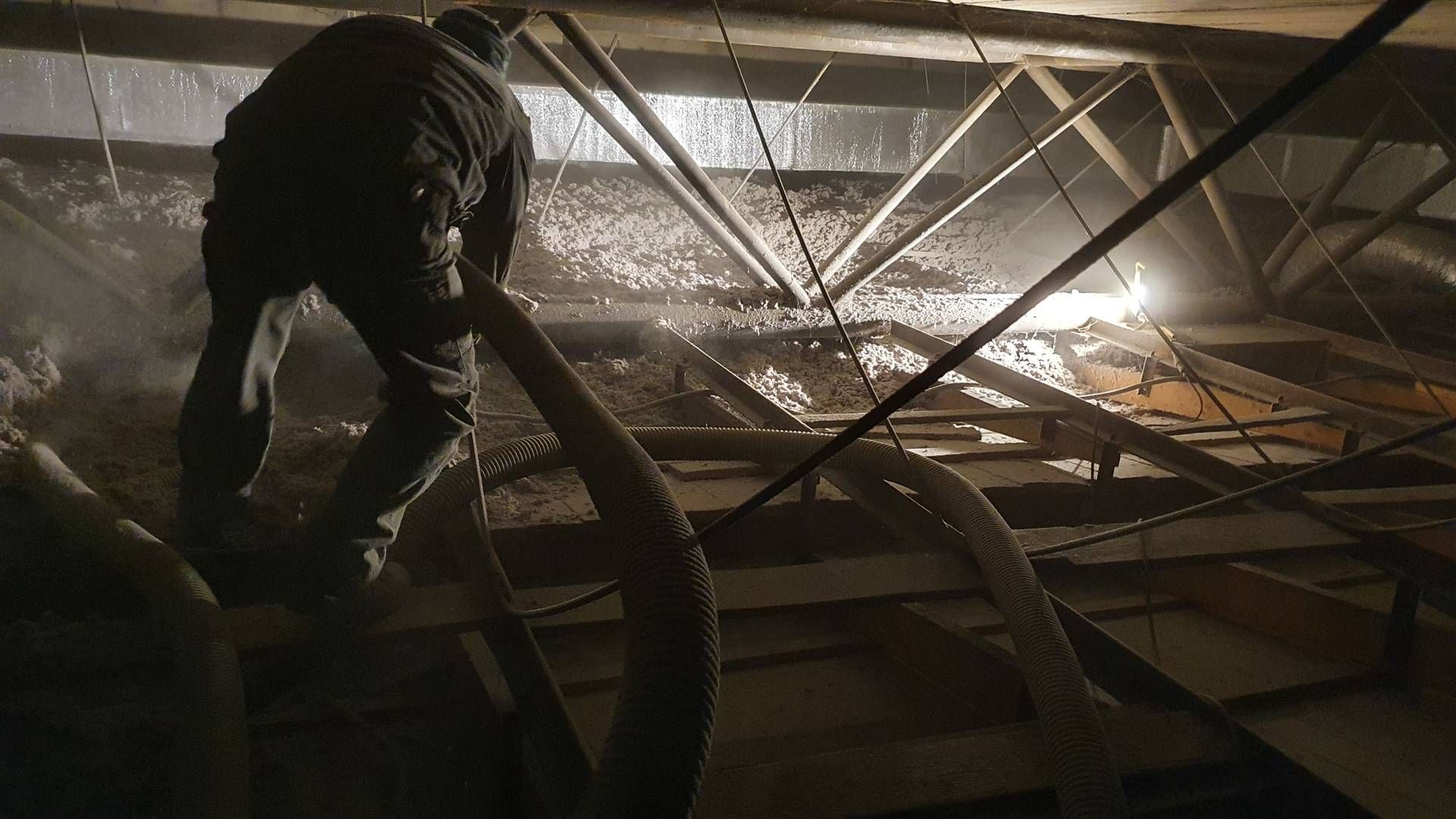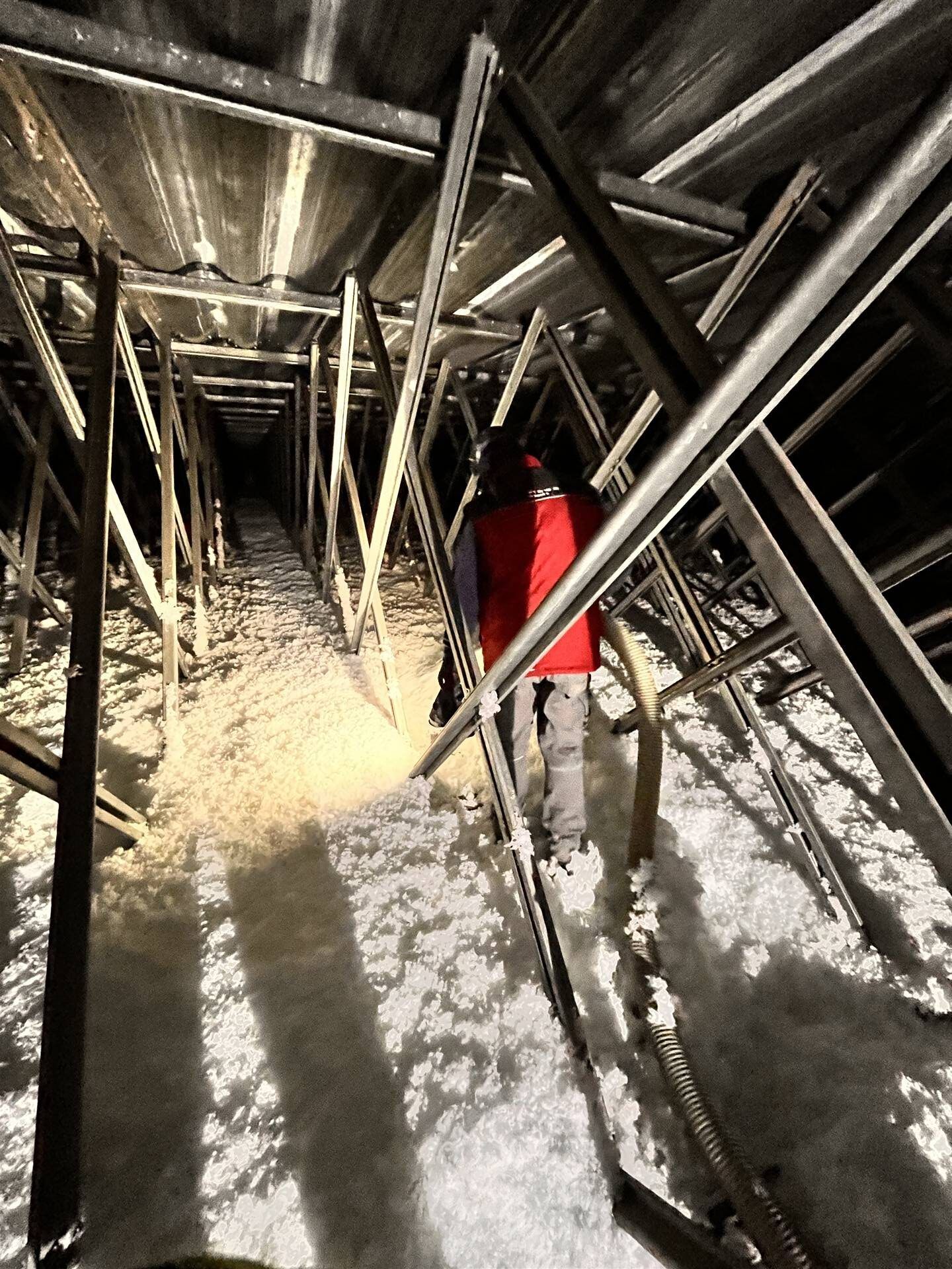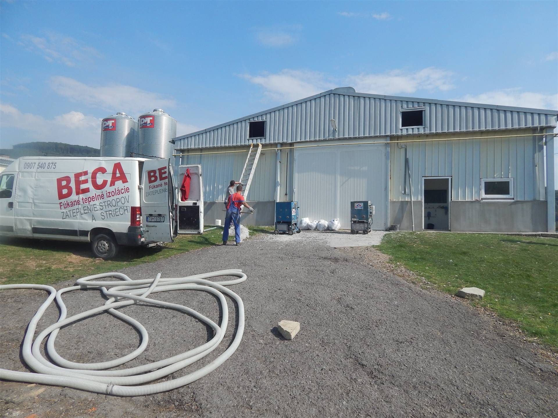 Fúkaná izolácia – zateplenie stropnej konštrukcie predajných, skladových, priemyselných a poľnohospodárskych hál a objektov