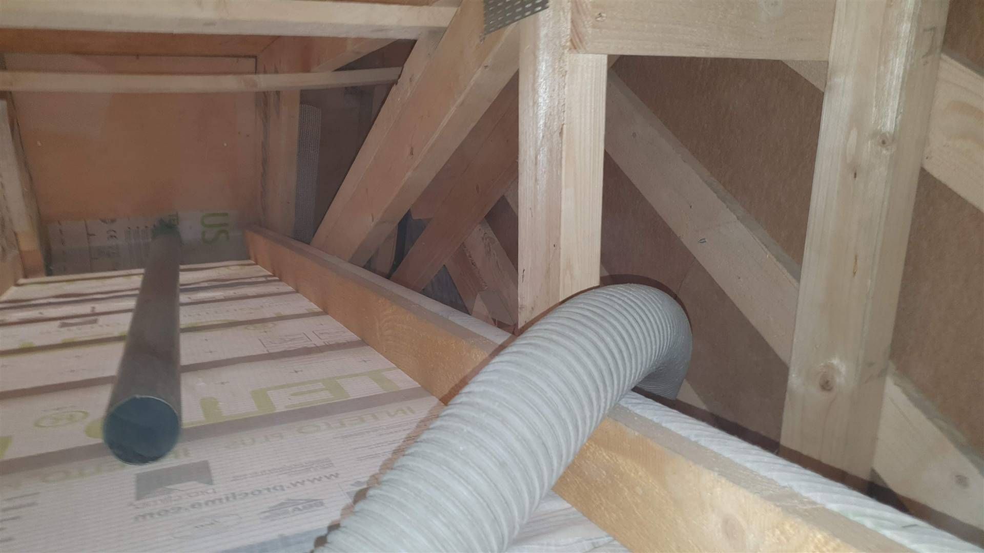 Pri šikmých častiach podkrovia je potrebné vytvoriť dutinu, ktorú následne vyplníme fúkanou izoláciou. Táto metóda zabezpečuje jednoliatu vrstvu izolácie bez škár a netesností. Izolácia sa musí fúkať s vyššou objemovou hmotnosťou, čo zabraňuje zosadaniu materiálu a zabezpečuje dlhodobú stabilitu. Zateplenie podkrovia alebo drevostavby je najlepšie plánovať už vo fáze projektu stavby, čím sa zabezpečí správny návrh skladby konštrukcie a optimálna funkčnosť izolácie.